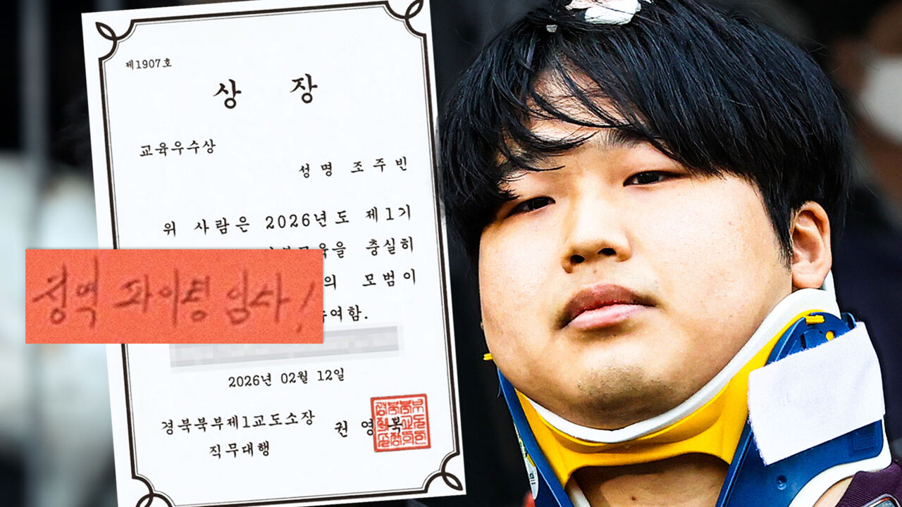 상장에는 조주빈이 2026년도 제1기 집중인성교육 기본교육을 우수하게 이수했다고 적혀 있습니다.