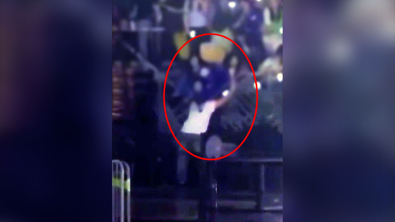 한 멤버가 손을 흔들자 관객들이 몰려들더니, 갑자기 펜스가 무너지며 관객들이 떨어집니다.
