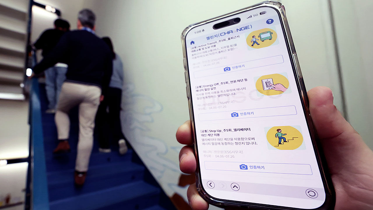 이렇게 계단을 이용하거나 출퇴근 시 대중교통을 탔다는 점을 사내 앱을 통해 인증해 포인트를 쌓으면 커피나 편의점 상품권으로 교환할 수 있습니다.