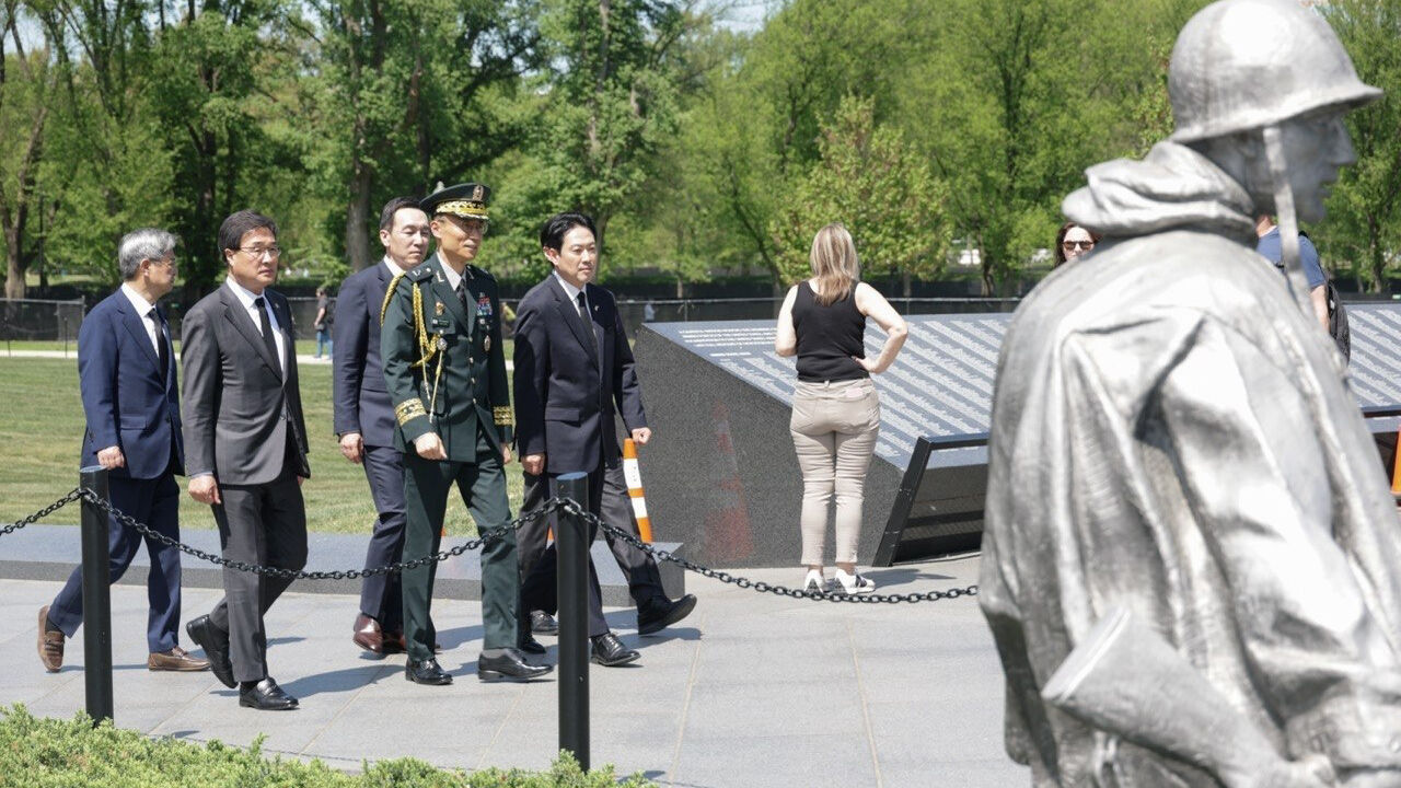 ▲ 미국을 방문 중인 국민의힘 장동혁 대표가 14일(현지 시간) 한국전쟁 기념비를 참배하기 위해 방문하고 있다.