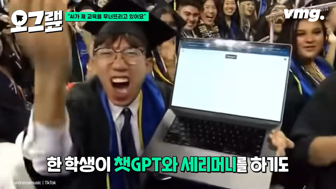 AI를 활용한 학습이 너무나 일상화된 나머지 지난 6월 UCLA 졸업식에서는 한 학생이 챗GPT와 세리머니를 하기도 했어요. 열심히 공부한 결실을 축하하는 졸업식 행사에서 AI 사용을 당당하게 공개한 겁니다.