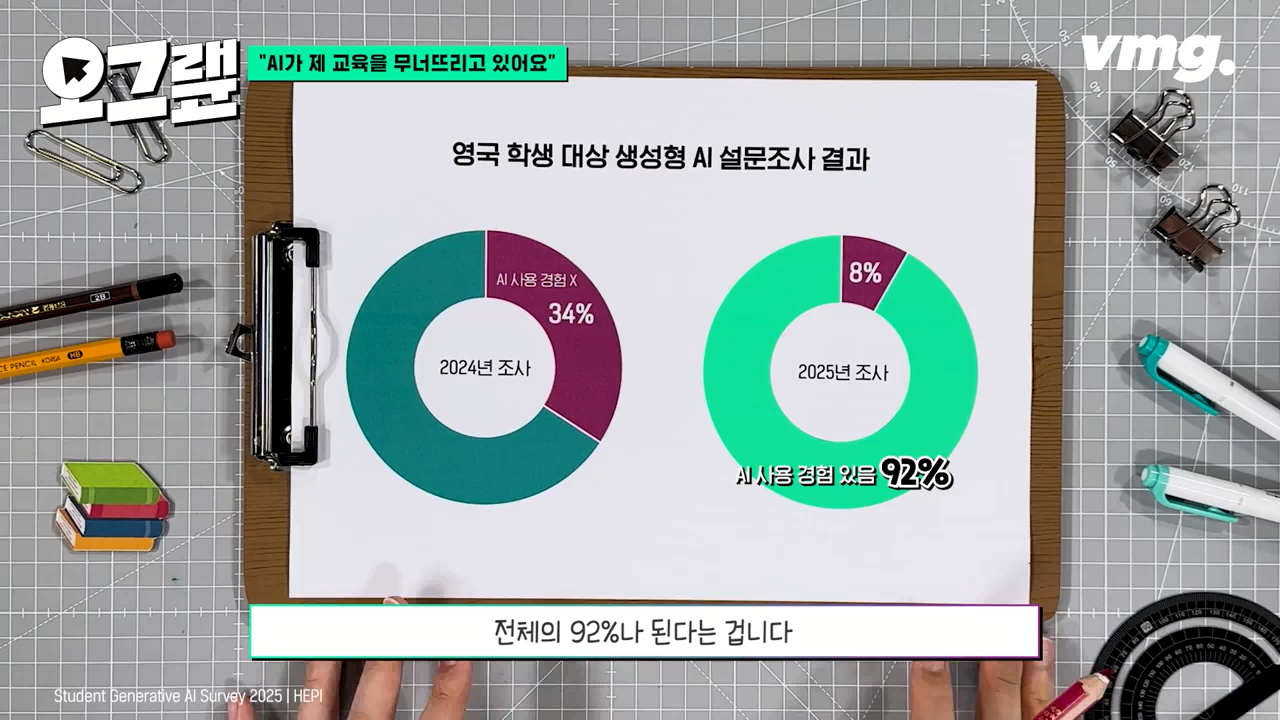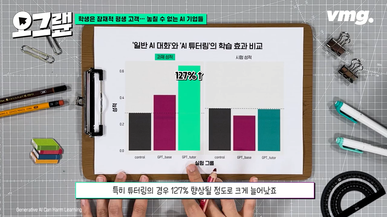 하지만 이렇게 하면서도 한 편으로는 이런 생각이 듭니다. "이게 정말 맞는 걸까?" 오늘 오그랲에서는 AI가 우리 교육에 미치는 영향에 대해 5가지 그래프를 가지고 이야기 나눠보려고 합니다.