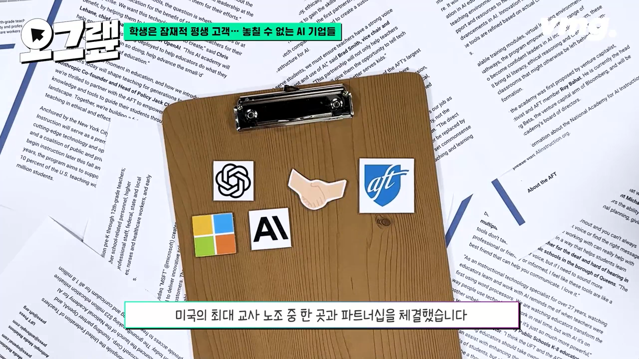 지난 7월 8일에 오픈AI, MS, 앤트로픽 AI 3사는 미국의 최대 교사 노조 중 한 곳과 파트너십 체결했습니다. 파트너십 규모는 2,300만 달러로 우리나라 돈으로 320억 원이 넘는 엄청난 금액을 자랑합니다. 이 파트너십의 결과로 미국엔 국립 AI 교육 아카데미가 출범했어요. 그리고 올 가을부터 아카데미에서는 교사들을 대상으로 AI 활용 방법 교육 예정이죠.