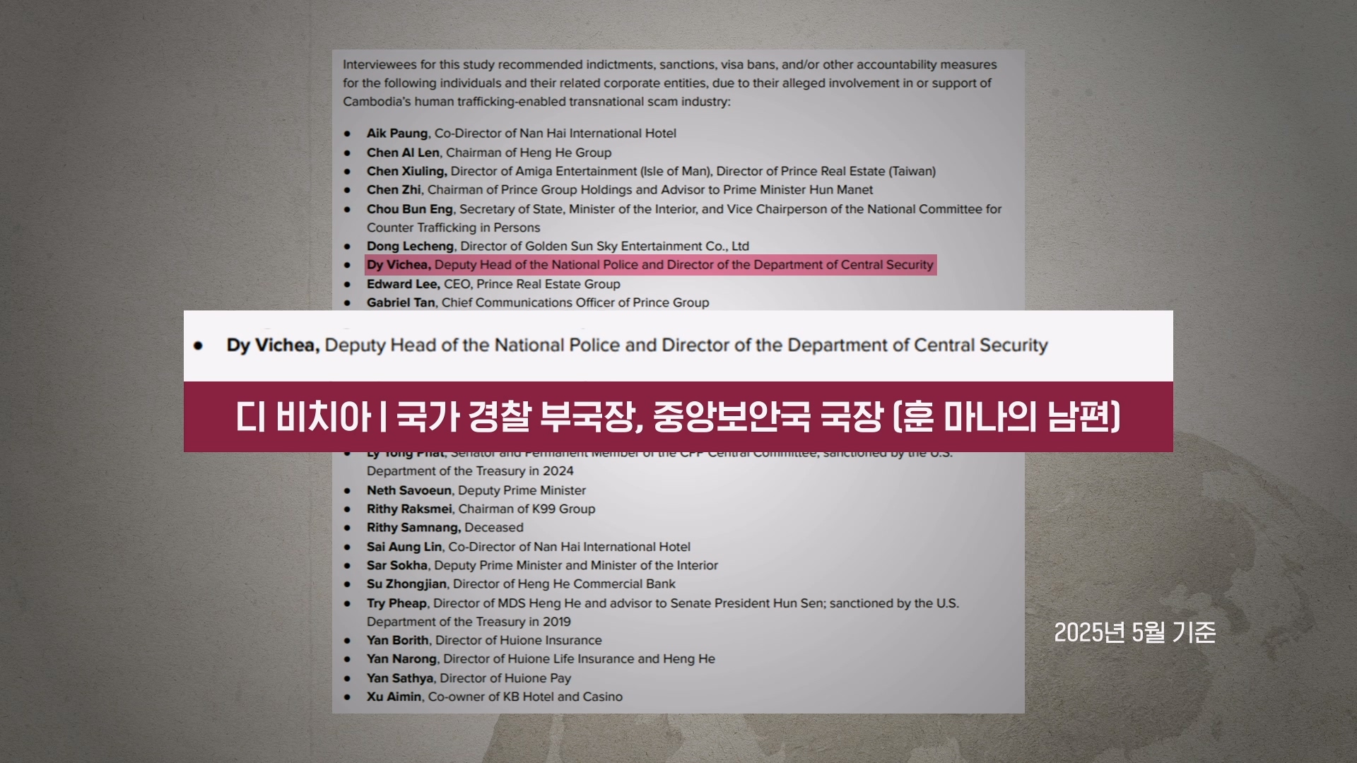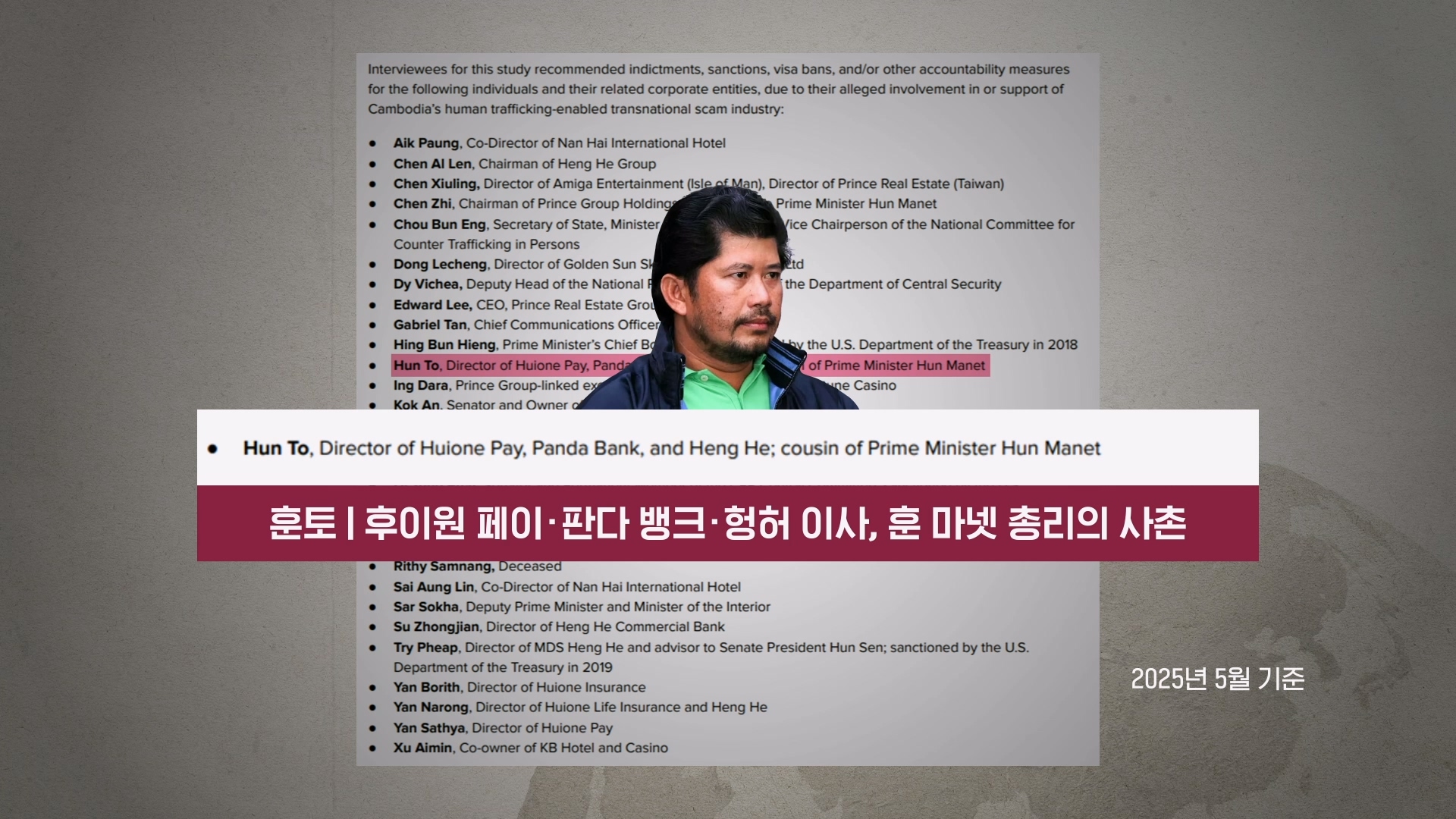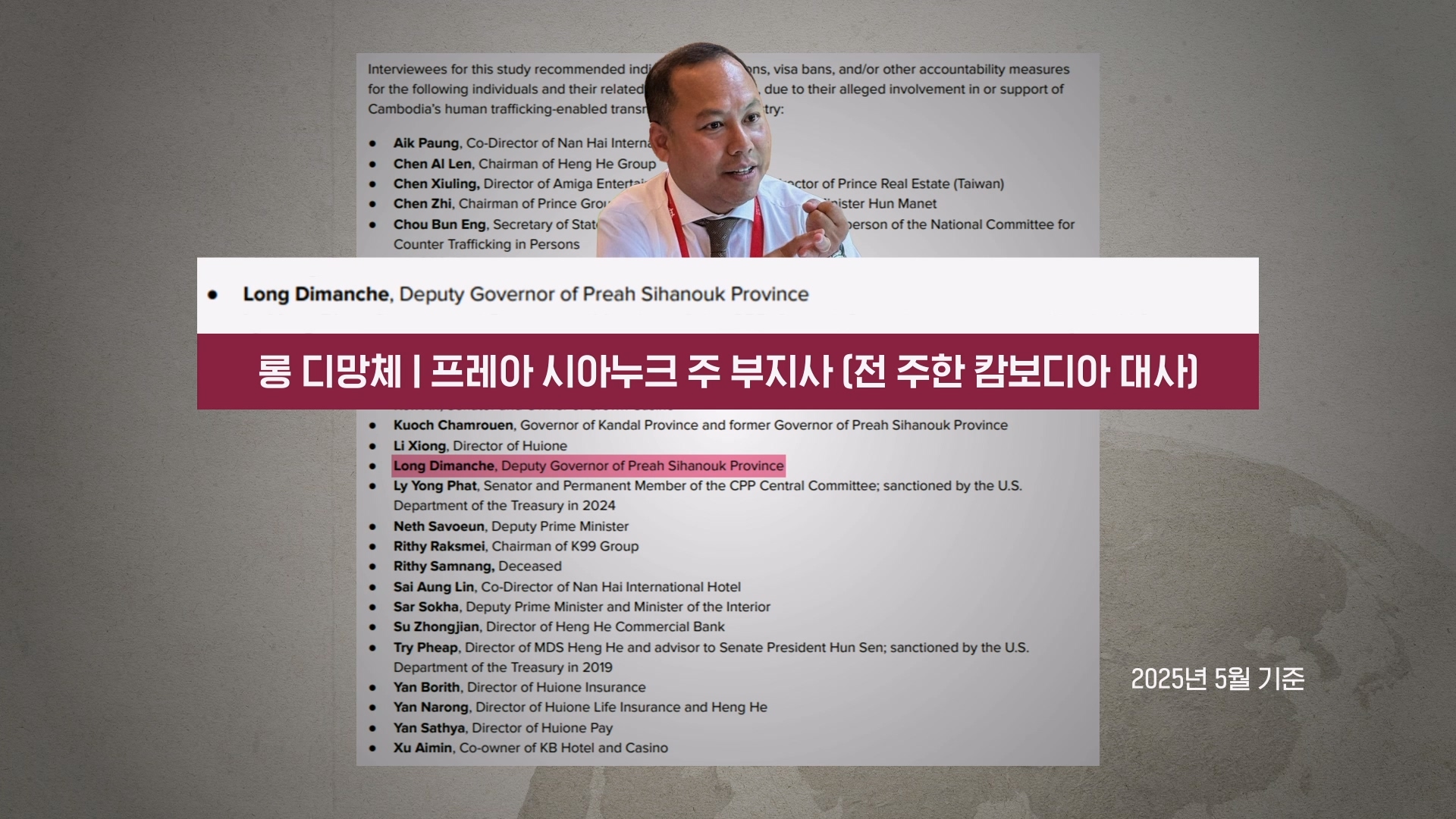 그리고 이 보고서에는 전 주한 캄보디아 대사였던 인물도 적혀 있었습니다. 여러 보고서에서는 실제로 훈센 전 총리를 비롯한 훈센 가문이 이 산업에 매우 밀접한 관련이 있다는 지적을 내놓고 있습니다.