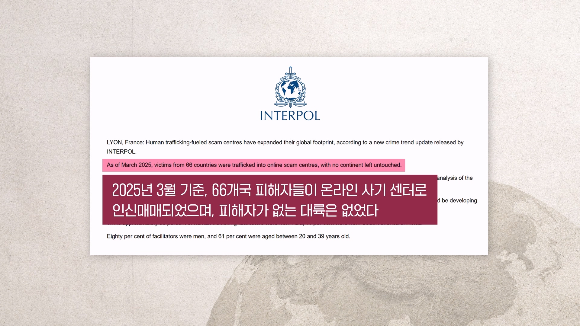 실제로 이 거대한 범죄 산업 구조는 동남아시아를 중심으로 확산이 되고 있고, 올해 3월 기준 66개국에서 인신매매 피해가 확인이 될 정도로 전 지구적인 문제로 커져서 피해자가 없는 대륙이 단 한 곳도 없을 정도입니다.