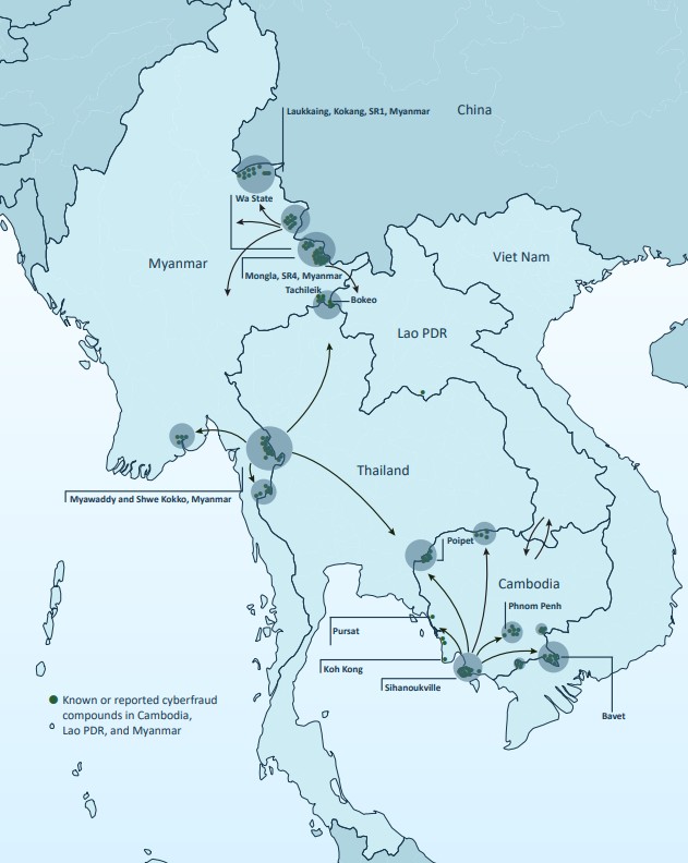 그리고 이 지도를 보시면요. 2023년부터 2025년까지 메콩 지역 내에 알려진 여러 사기 센터들의 위치를 확인하실 수가 있습니다. 이처럼 메콩 지역에서는 여러 사기 센터들이 있고 범죄에 가담한 이들이 국경을 넘나드는 걸 확인하실 수가 있습니다.