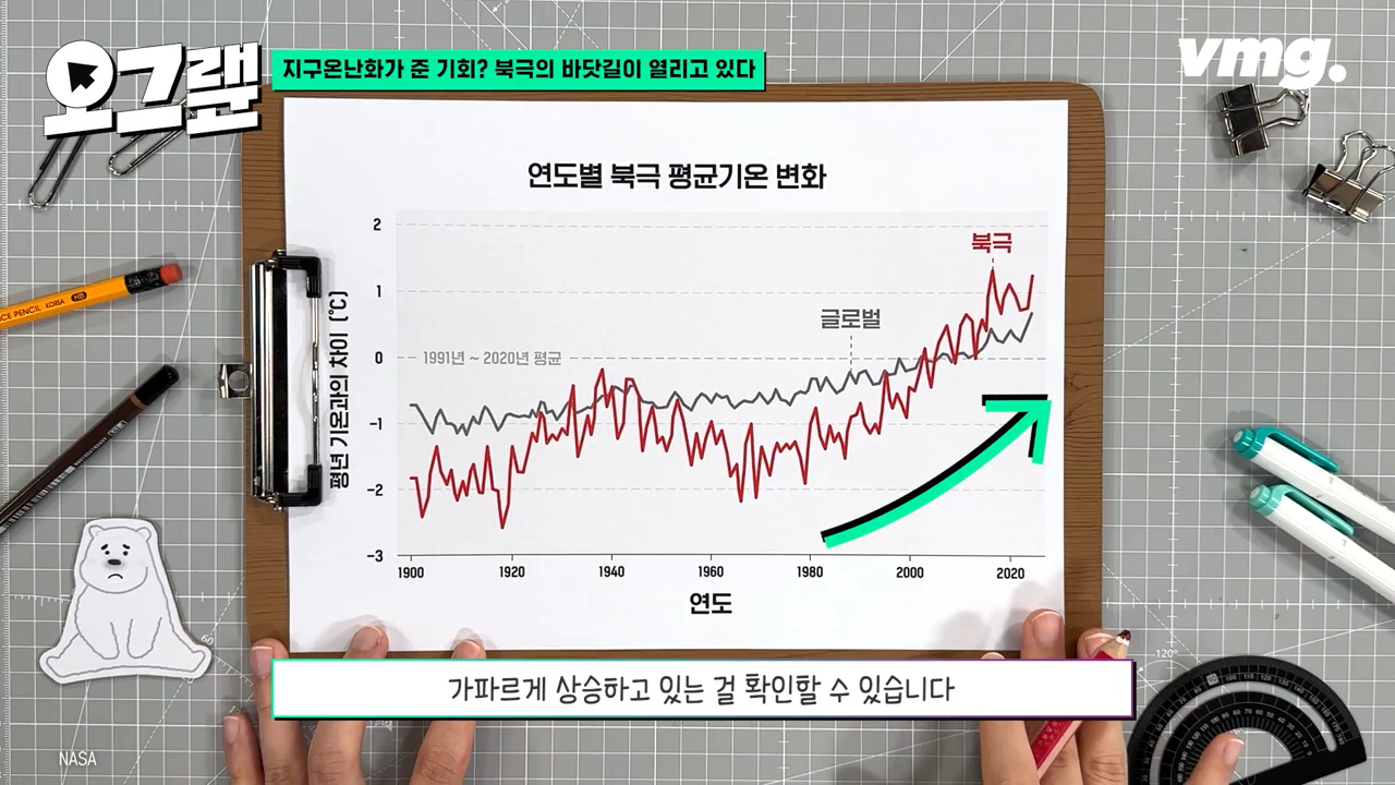 문제는 북극은 지구 평균보다 훨씬 빠르게 뜨거워지고 있다는 겁니다.