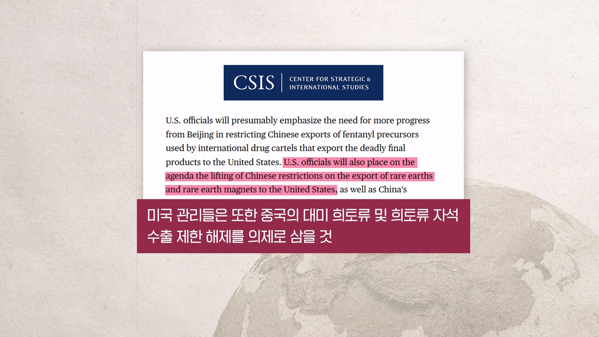 미국의 전략국제문제연구소인 CSIS의 한 연구 결과를 보면요. 미국 관리들은 또한 중국의 대미 희토류 및 희토류 자석 수출 제한 해제를 의제로 삼을 것이다라고 분석을 했습니다.