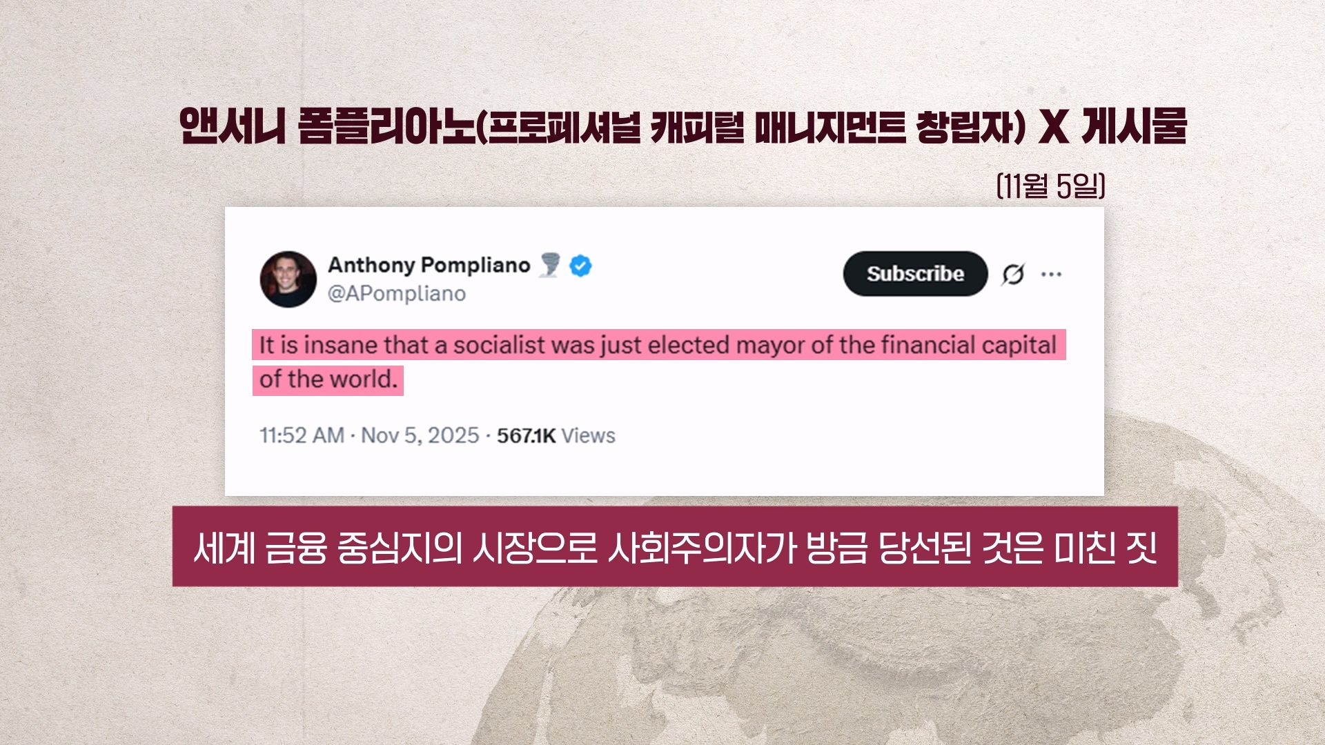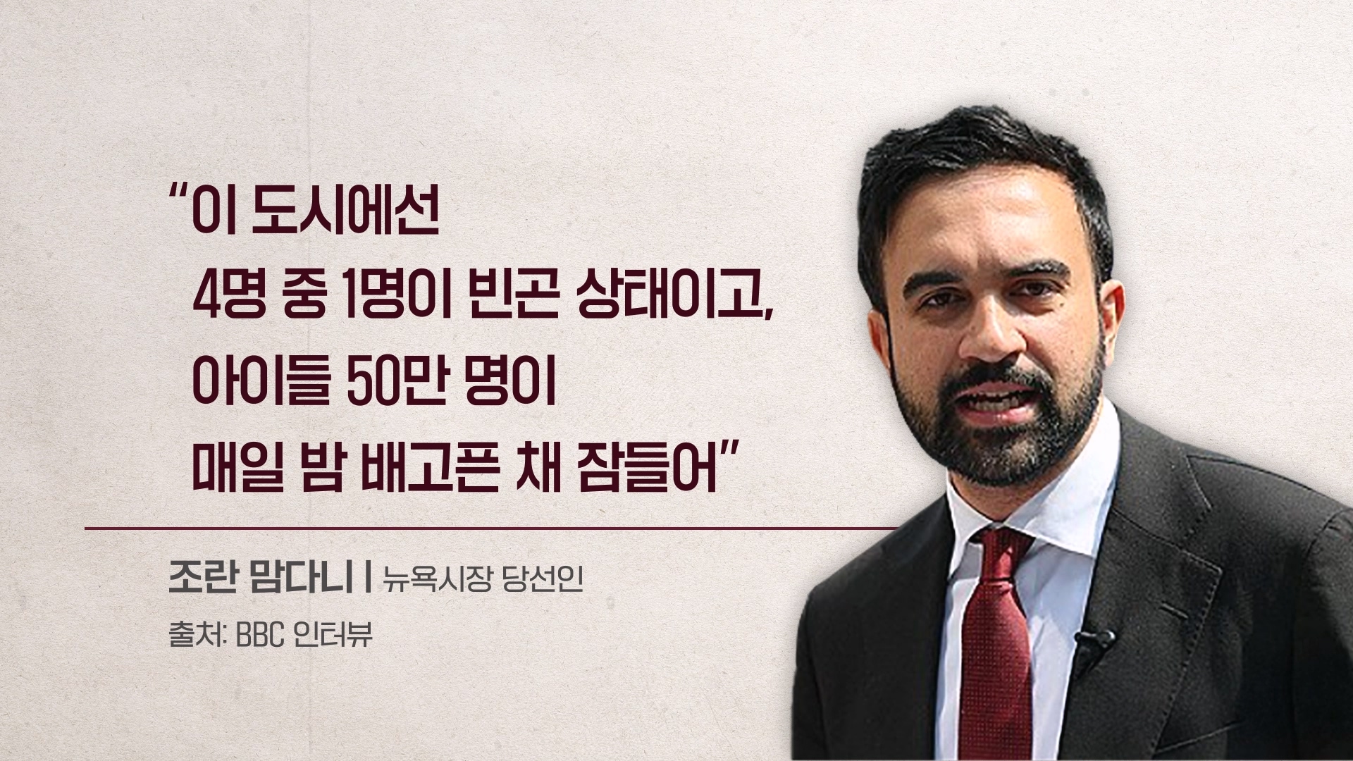 이런 그가 왜 선출이 되었는가, 이걸 두고서 내외신에서 많은 분석들을 내놓고 있는데요. 결국 저희가 봤을 때는요. 유권자들이 가장 원하는 게 뭔지를, 이미 그가 시장 선거에 나오기 전부터 그 우선순위를 정확하게 읽어냈기 때문이다, 이렇게 평가를 할 수가 있겠습니다. 그는 본인을 민주사회주의자라고 공공연하게 이야기를 해 오면서 이런 발언도 한 바가 있습니다.