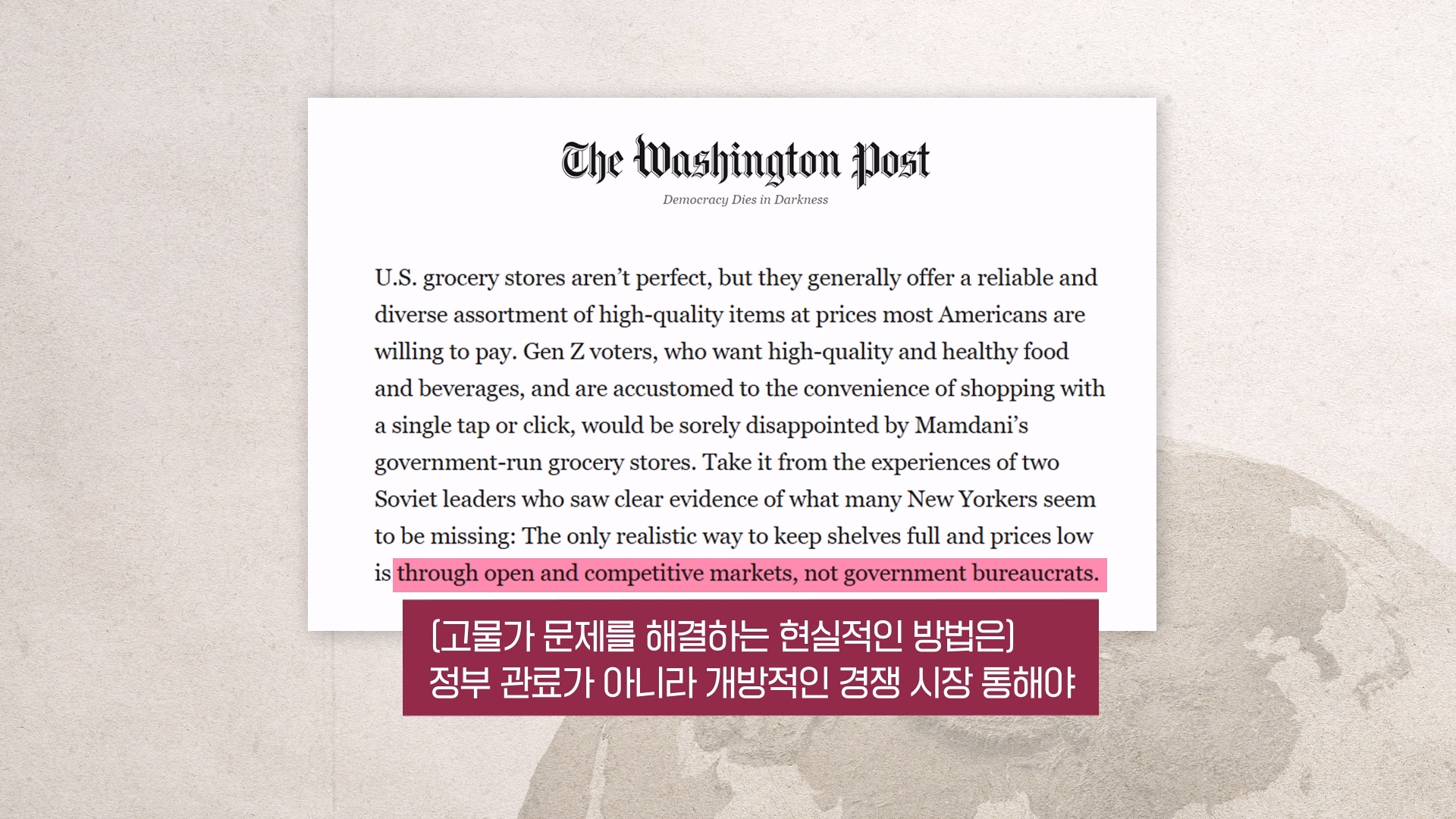 워싱턴 포스트의 한 사설에서는요. 특히 뉴욕시가 운영하는 식료품점 설치 공약을 두고, 고물가 문제를 해결하는 현실적인 방법은 정부 관료가 아니라 개방적인 경쟁적 시장을 통해서다라고 하면서 이 공약이 과연 실현 가능하겠는가, 이렇게 실효성에 의문을 제기했습니다.