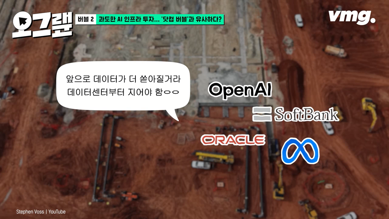 돈이 몰리는 빅테크 기업들은 많은 돈을 AI 인프라에 투자하고 있습니다. 메타의 마크 저커버그는 맨해튼 크기만 한 AI 데이터센터를 짓겠다고 했고요, 오픈AI와 오라클, 그리고 소프트뱅크는 미국 전역에 거대 AI 데이터센터 스타게이트를 짓고 있습니다.