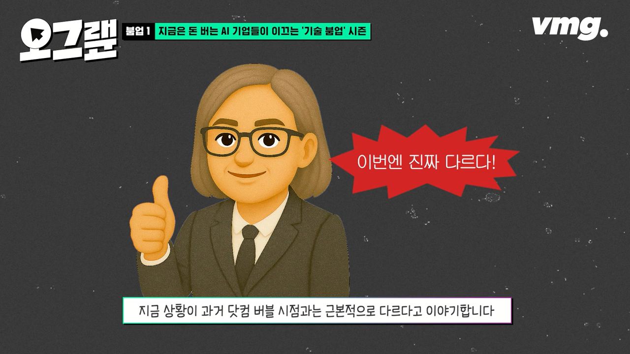 지금까지 AI 시장을 두고 버블이라는 쪽과 버블이 아니라는 쪽의 주장을 살펴봤습니다. 여러분들의 생각은 어떠신가요? 전문가들조차 이렇게 팽팽하게 나뉘어 있는 만큼 "정답이 무엇이다"라고 단언하기는 어려워 보입니다. 오히려 양쪽 주장 모두 일리가 있는 복합적인 상황이라고 보는 게 맞는 것 같죠.