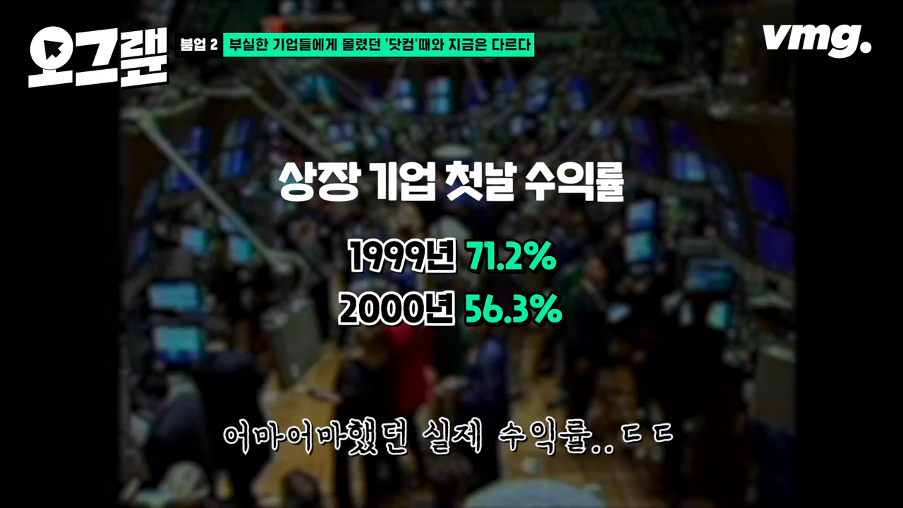 당시 투자자들은 일단 상장한 IT 벤처기업이라면 투자 가치가 있다고 판단을 했습니다. 왜냐하면 실제로 이들 기업들이 상장 첫날 기록한 수익률을 보면 상당했거든요.