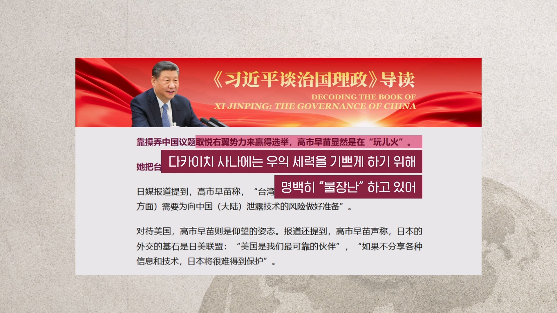 일본은 아베 정권 이후 대중 강경 노선을 꾸준히 유지를 해 왔고요. 다카이치 총리 역시 그 기조를 정치적으로 자신에게 유리한 방향으로 계속 활용할 거란 분석이 나옵니다.