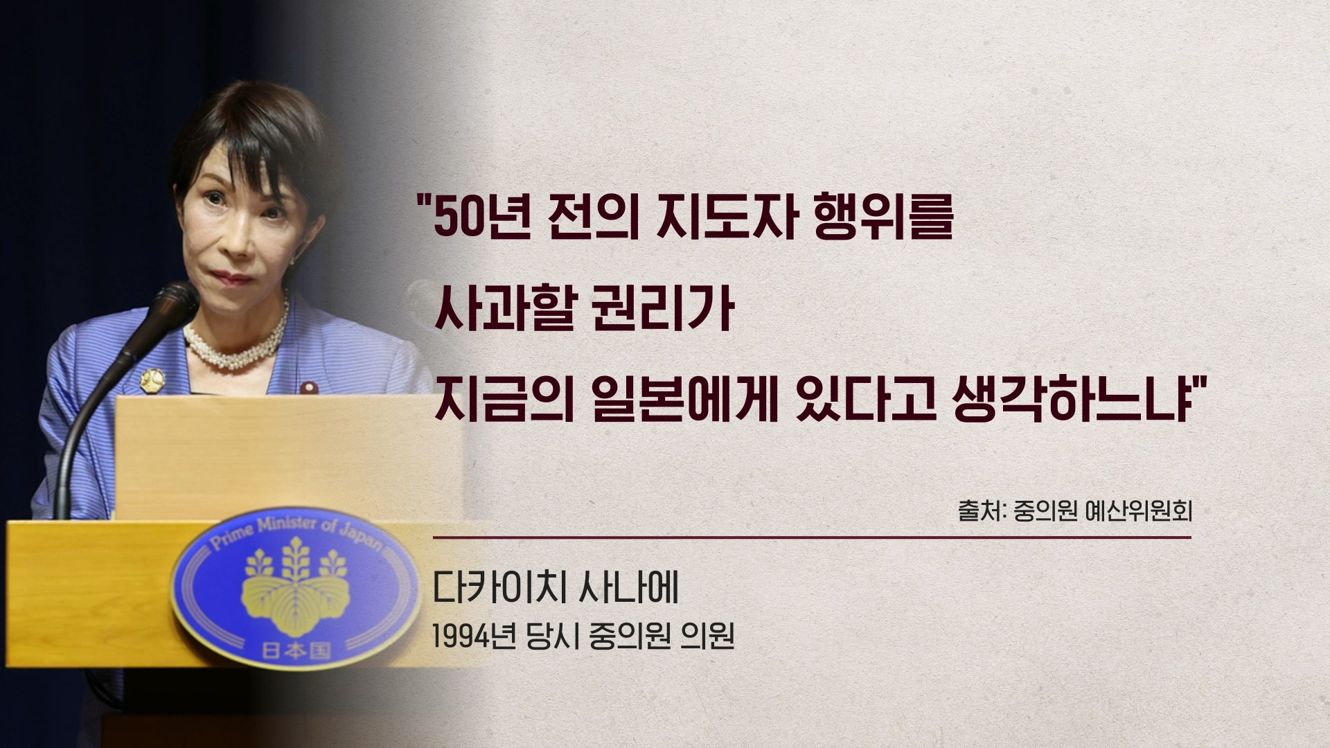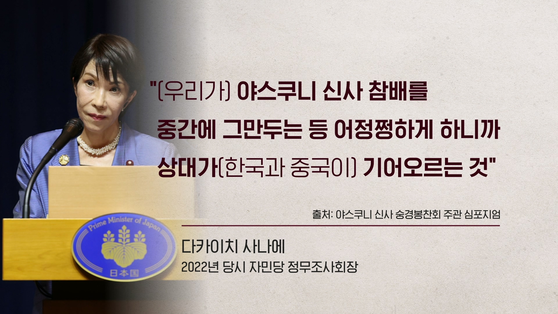 다카이치 총리는 오랜 기간 수정주의적 역사 인식을 견지를 해 왔습니다. 일제의 식민지배 책임을 약화시키고 일본군 '위안부' 문제를 부정하고 또 일본의 침략 전쟁을 반성할 필요가 없다는 입장을 재확인을 해 왔는데요. 야스쿠니 신사 참배에도 사실상 문제가 없다는 태도를 계속 이어왔습니다.