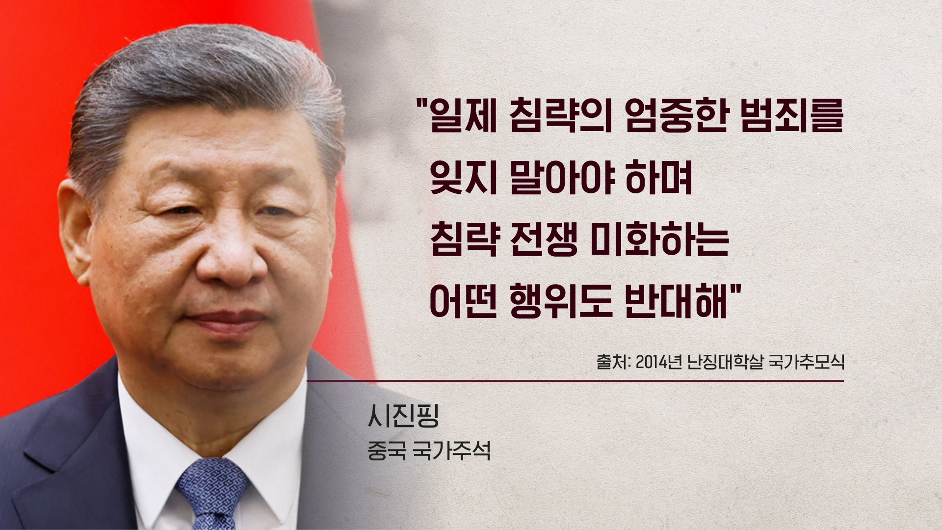 반대로 시진핑 주석은 오랫동안 난징대학살을 비판을 했고요.