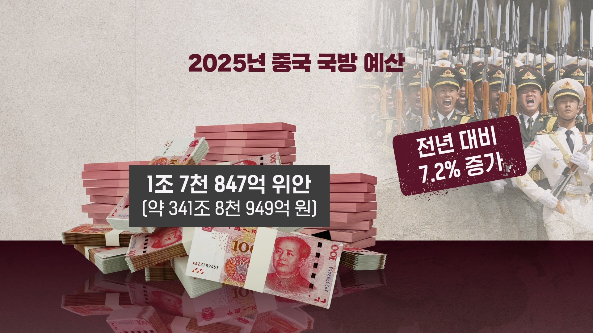 올해 국방비가 전년 대비 7.2% 늘어난 1조 7천 847억 위안, 우리 돈으로 약 341조 8천 949억 원으로 책정이 됐습니다. 아직 내년 국방 예산은 공개가 되지 않은 상태입니다.