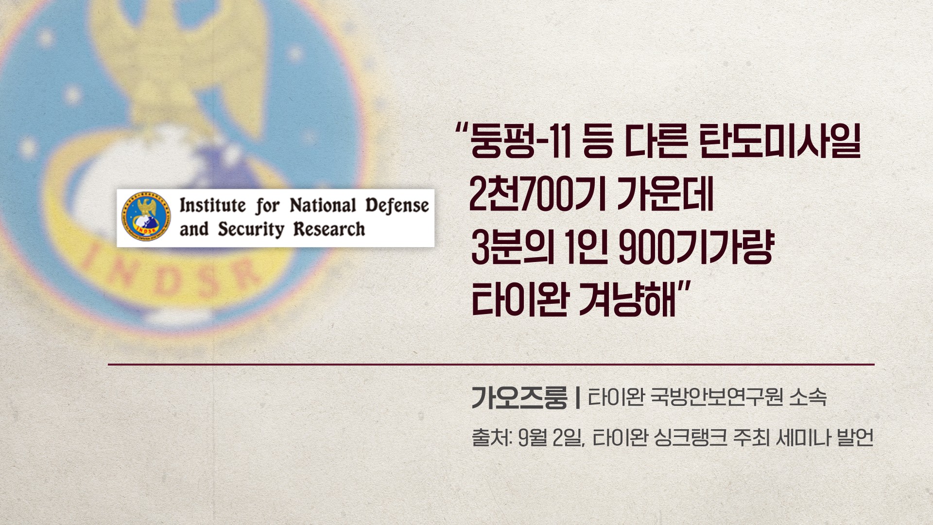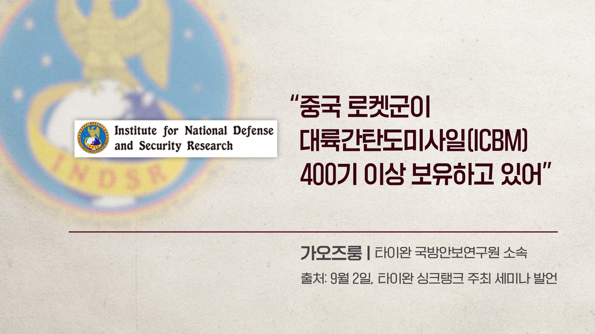 국방안보연구원의 가오즈룽 연구원은요. 중국 로켓군이 ICBM(대륙간탄도미사일) 400기 이상을 보유하고 있으며, 그 외에 둥펑(東風·DF)-11 등 다른 탄도미사일 2700기 가운데 3분의 1인 900기 가량이 타이완을 겨냥하고 있다라고 경고한 바 있습니다.