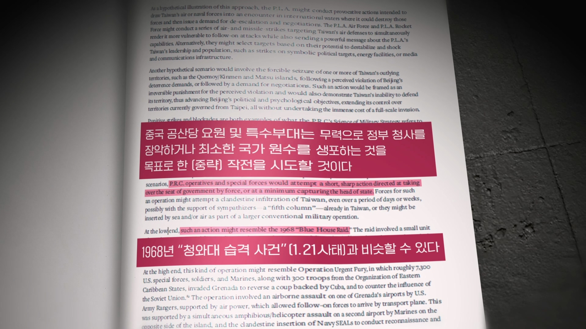 또 특수부대 동원 등을 통해서 무력으로 정부 중심지를 장악을 하거나 주요 인사들을 체포하는 형식도 가능할 수 있다면서 특히 1968년 북한의 청와대 습격 사건인 1.21 사태와 비슷한 형식을 검토할 수도 있다, 이렇게 거론을 하기도 했습니다.