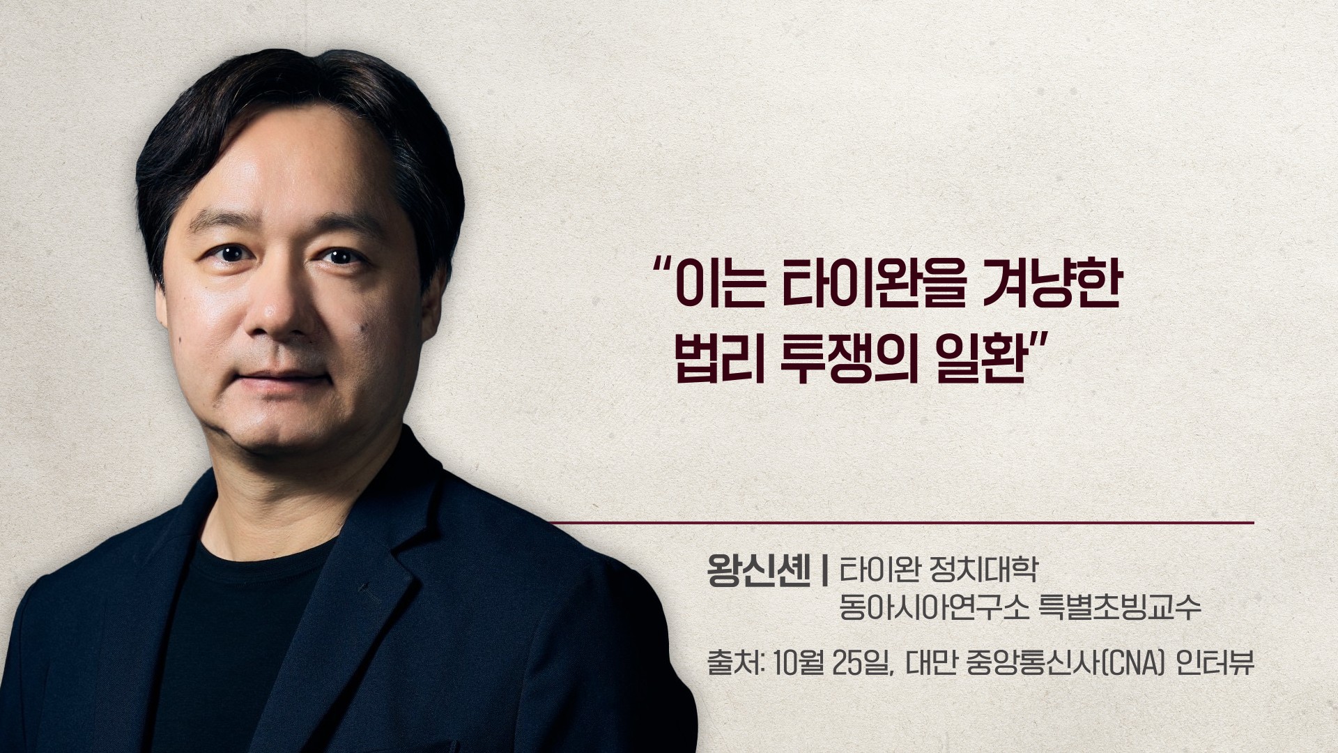 타이완 정치대학 동아시아 연구소의 한 교수도요. 이는 타이완을 겨냥한 법리 투쟁의 일환이라면서 타이완 문제에 대해서 주도권을 쥐려는 것이다라고 설명했습니다.