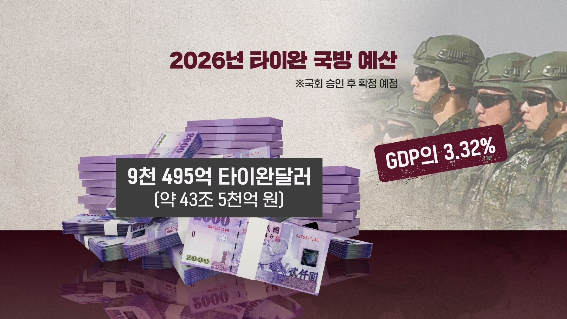 내년도 중앙정부 총예산안을 보시면요. 아직 국회의 최종 승인이 필요한 상태이긴 하지만요. 9천 495억 타이완 달러, 우리 돈 약 43조 5천억 원 규모의 국방 예산이 편성이 됐습니다. 이는 타이완 국내 총생산(GDP)의 3.32%에 해당합니다. 2009년 이후 처음으로 GDP 대비 국방비 비중이 3%를 넘게 된 것이라는 분석이 나오는데요.
