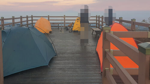 '노꼬메정상 캠핑'이라는 해당 글의 작성자는 "날씨가 추워지면서 불도 사용하는 것 같은데, 자칫 잘못하면 산불 우려도 있고 화장실도 없는데 용변은 어디서 처리하나"라며 정상 데크에 설치된 텐트 사진들을 첨부했습니다.