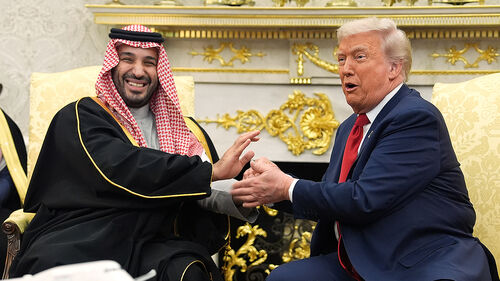 ▲ 도널드 트럼프 미국 대통령과 무함마드 빈 살만 사우디아라비아 왕세자가 18일(현지시간) 백악관에서 양자 회담을 갖고 있다.