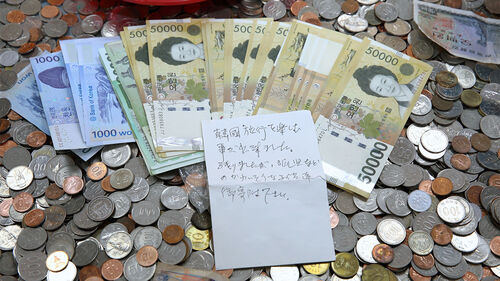 오늘(1일) 대한적십자사 부산지사에 따르면 지난달 26일 김해국제공항에 설치된 모금함 개함 과정에서 일본 여행객이 남긴 것으로 추정되는 현금 110만 원 상당의 지폐와 손편지가 발견됐습니다.