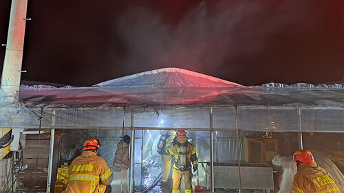 경북 고령 딸기 비닐하우스서 불…1시간 20분 만에 진화입력 2025.12.02 08:49 유영규 기자 Seoul 이미지 확대하기다음 추천 영상 영상...영상...영상...▲ 고령군 딸기 양육 비닐하우스 화재오늘(2일) 오전 4시 58분 경북 고령군 덕곡면 한 딸기 재배 비닐하우스에서 원인이 밝혀지지 않은 불이 나 1시간 20분 만에 진화됐습니다. 불로 165㎡ 규모 비닐하우스 1개 동 전체와 안에 있던 농기계와 딸기 모종 등이 불에 탔습니다. 경찰과 소방 당국은 정확한 화재 원인을 조사하고 있습니다. (사진=경북도소방본부 제공, 연합뉴스)Copyright Ⓒ SBS. All rights reserved.무단 전재, 재배포 및 AI학습 이용 금지
