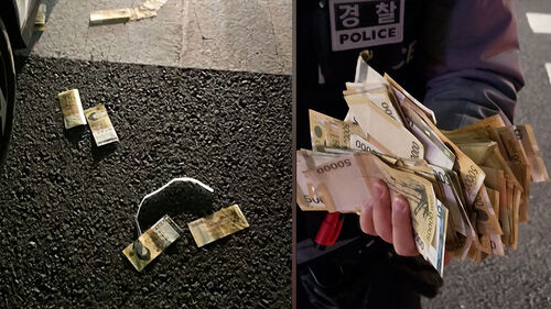 현장을 목격한 여성 A 씨는 길바닥에 5만 원권이 보여서 주변을 살펴보니 돈이 도로 위에 널려 있었다며 정신없이 돈을 줍게 됐고 차들까지 멈춰 서서 기다려 줄 정도였다고 전했는데요.