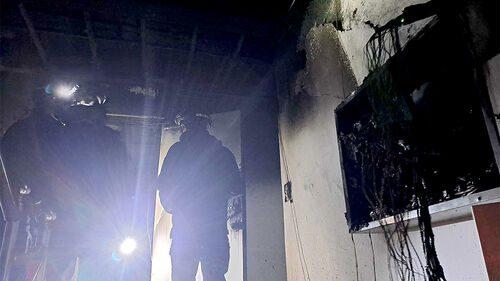 ▲ 불이 난 강릉 원룸 건물 내부서 인명 검색 중인 소방대원