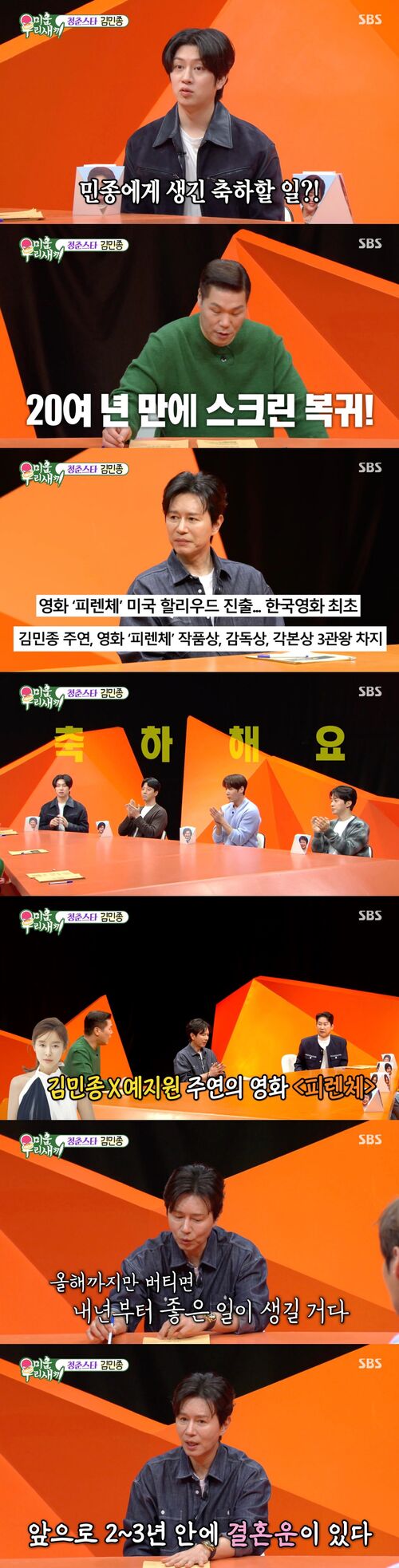 그리고 서장훈은 김민종이 제작진에게 2년 안에 결혼할 것 같다는 예고를 했다며 어떻게 된 것인지 물었다.