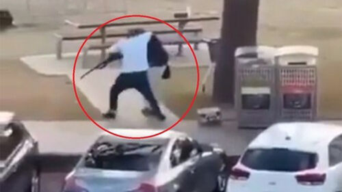 총격범이 달아나자 아흐메드 씨는 총을 내리고 손을 들어 허공에 흔듭니다.