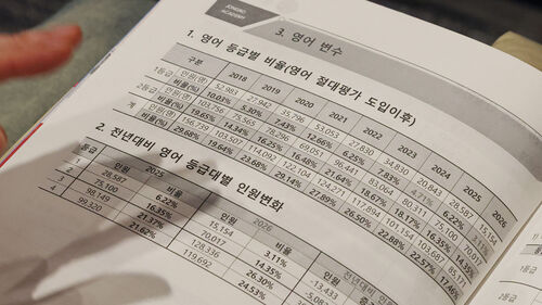 ▲ '2026 정시 합격 가능선 예측 및 지원전략 설명회'에서 학부모 및 수험생이 강사의 설명을 듣고 있다.