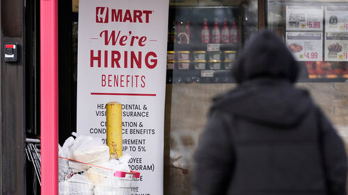 ▲ 15일(현지시간) 미국 일리노이주 마트 근로자 모집 안내문