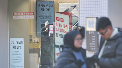 ▲ 3일 서울 시내 한 KT 매장 화면에 유심 교체 관련 안내문이 표시돼 있다.