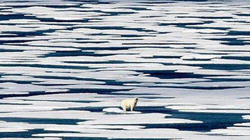 ▲ 북극 군도의 얼음 위에 서 있는 북극곰