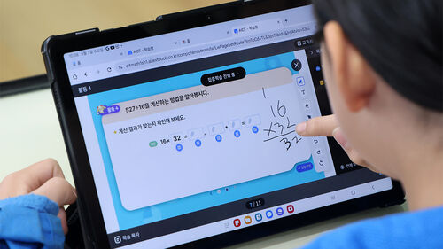 ▲ 디지털교과서로 나눗셈 익히는 초등학생
