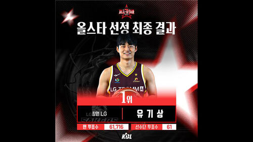 한국농구연맹(KBL)은 2025-2026 LG전자 프로농구 올스타전 선발 투표에서 유기상이 팬 투표와 선수단 투표 합산 최종 1위에 올랐다고 밝혔습니다.