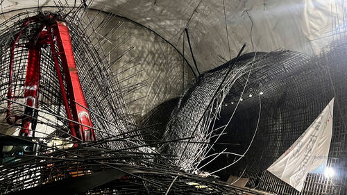 아치 형태의 지하 터널 상부에 고정돼 있던 길이 40미터에 달하는 대형 철근 구조물이 그대로 무너져 내린 겁니다.