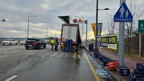오늘(19일) 오전 7시 40분쯤 광주 북구 용두대교 인근 도로를 주행 중이던 25t 화물차 적재함에서 맥주 상자가 도로로 떨어졌습니다.
