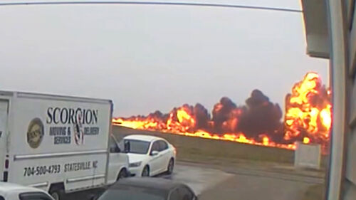 거대한 화염이 활주로를 따라 빠르게 번집니다.