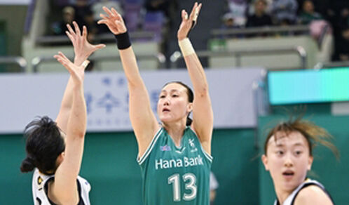 여자프로농구 현역 최고령 선수인 하나은행의 38살 김정은이 리그 역대 최다 출전 공동 1위로 올라섰으나 소속팀은 시즌 첫 연패를 당했습니다.
