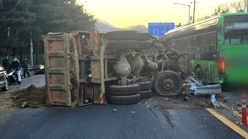 또 사고 충격으로 화물차가 옆으로 넘어지면서 해당 차량에 적재돼 있던 흙이 도로 위로 쏟아져 한때 정체가 빚어졌습니다.