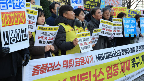 ▲ MBK파트너스 엄중제재 촉구 기자회견