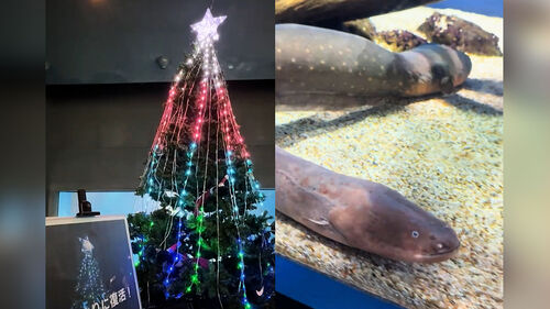 일본의 한 수족관은 아주 특별한 크리스마스 트리를 선보여 눈길을 끌고 있습니다.