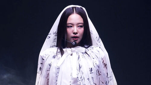 지난 20일 멜론 뮤직 어워드 무대에 선 제니는 15m 길이의 베일을 걸치고 등장했습니다.