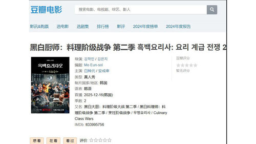 ▲ 중국 최대 리뷰 사이트 더우반에 만들어진 '흑백요리사2' 페이지