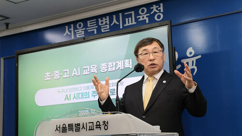 정 교육감은 "정보 교과 시수만 늘리는 방식으로는 (AI 활용 능력 향상에) 효과가 없다고 판단했다"며 "정보 교사가 AI 시대 학교를 선도하지만, 모든 과목의 교사가 AI 교육에 참여하는 게 옳은 길"이라고 말했습니다.