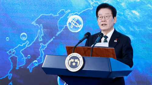 ▲ 이재명 대통령이 23일 부산 동구 해양수산부 청사에서 열린 개청식에서 축사하고 있다.